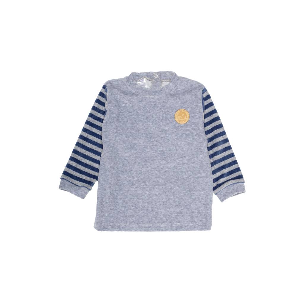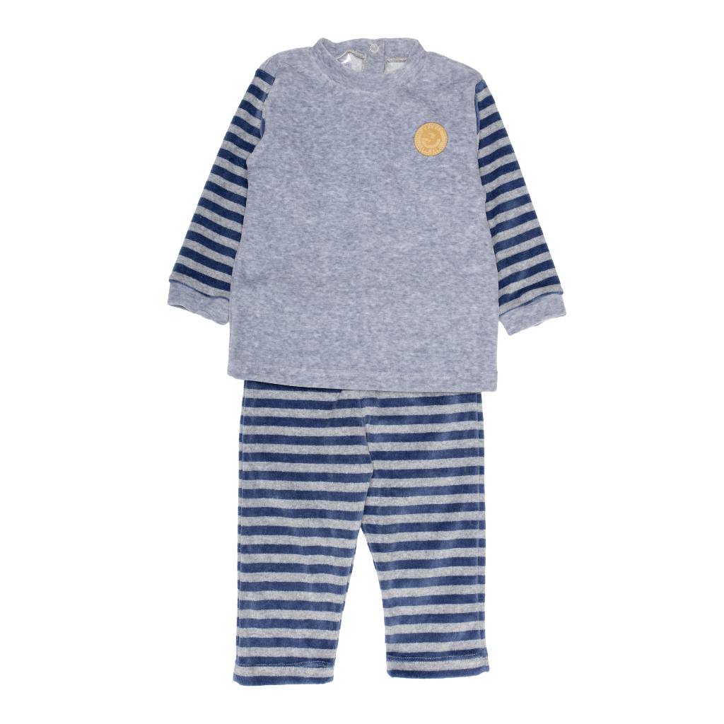 1. Buzo de Plush: Con cuerpo liso y mangas rayadas a tono. Cuenta con broches a presión en la espalda para que cambiarlo sea rápido y sencillo, sin tirones.